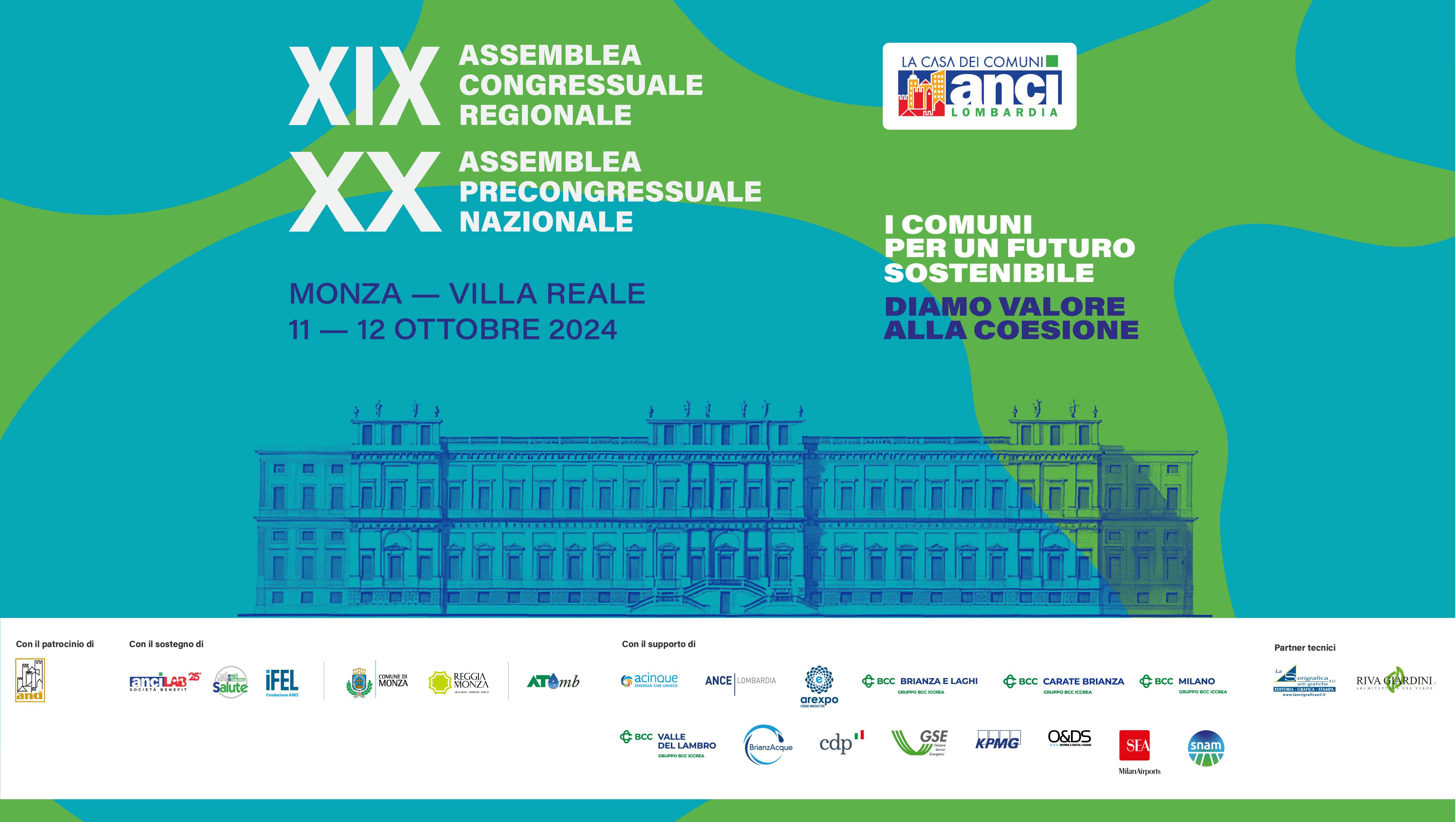ANCI Lombardia, in occasione della XIX Assemblea Congressuale e della XX Assemblea Precongressuale ANCI, nelle giornate di venerdì 11 e sabato 12 ottobre, organizza presso la Villa Reale di Monza, incontri e laboratori riservati a Sindaci, Consiglieri, Assessori e Segretari Comunali, dirigenti, funzionari e ruoli tecnici dei Comuni.